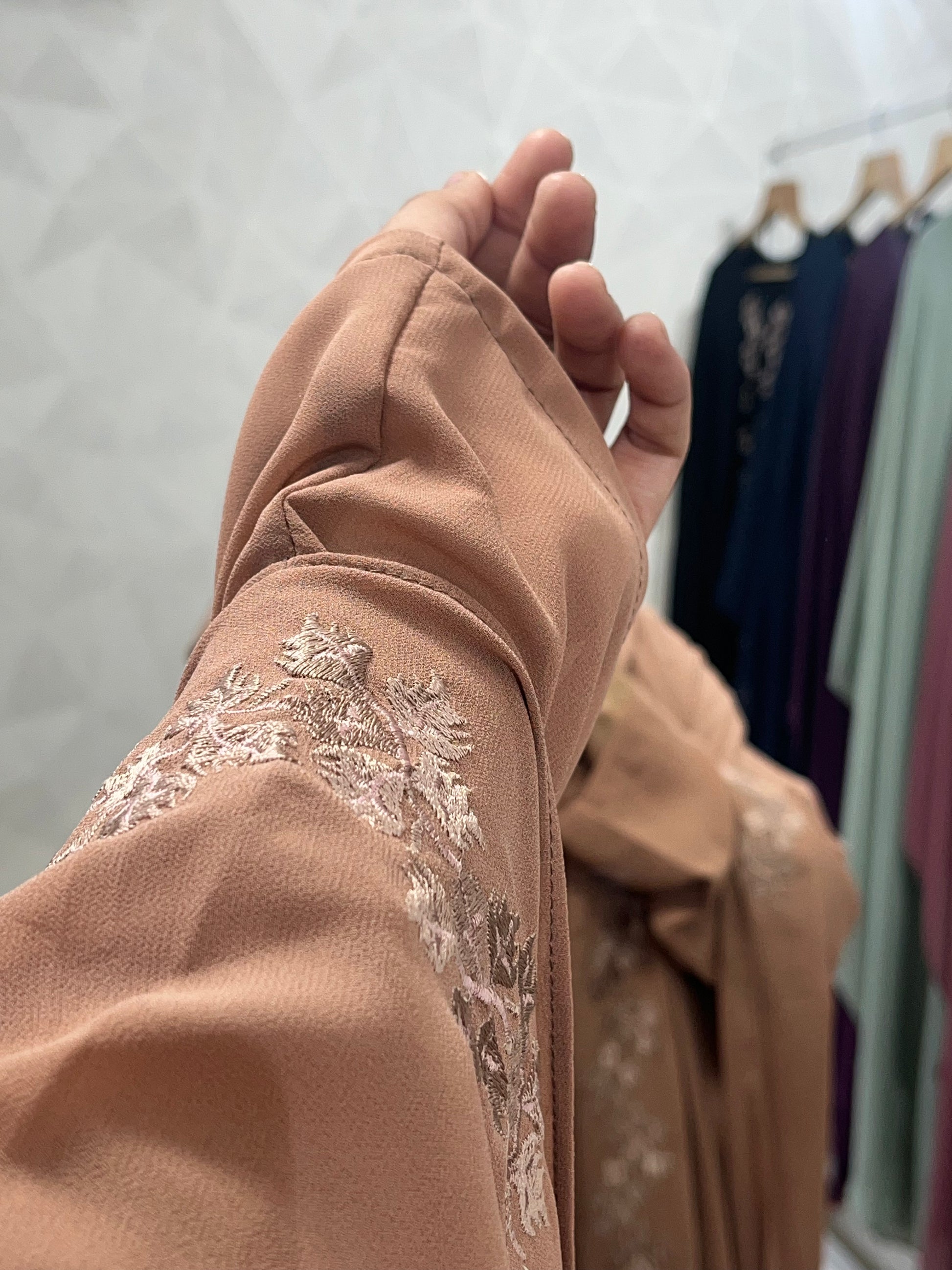 Tan Dubai Style Embroidered Kaftan Abaya