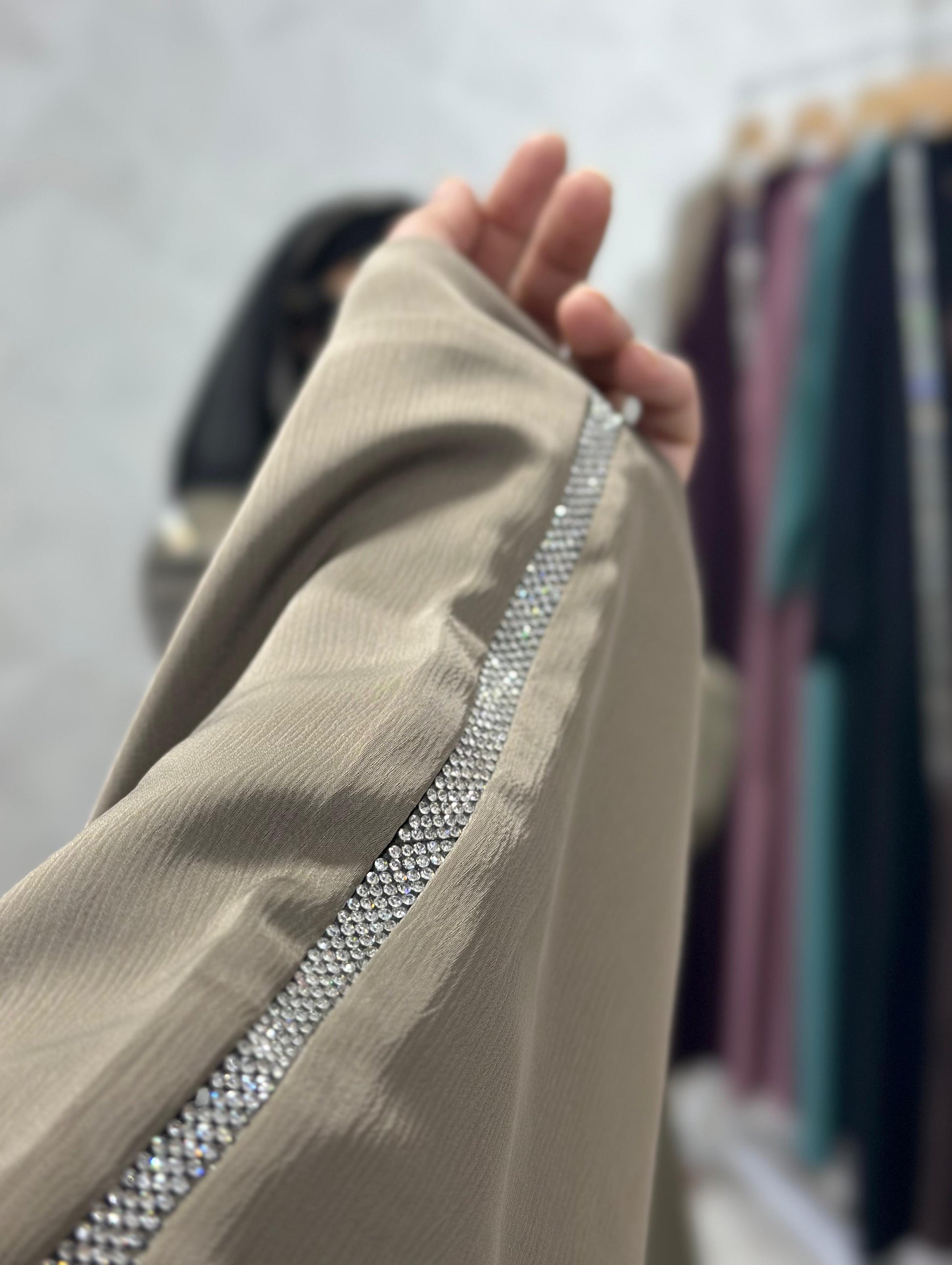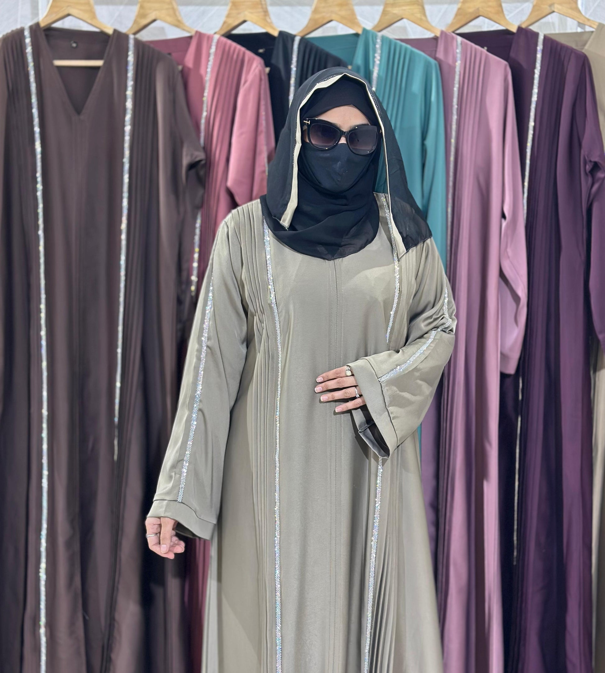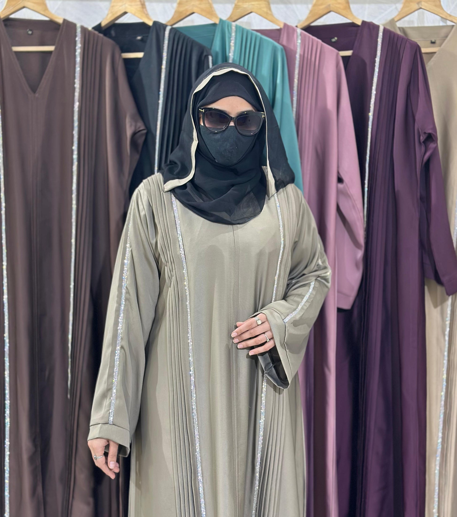 Enhance your wardrobe with our Plated Stone Lace Abaya, designed for a perfect blend of elegance and modesty. Featuring a graceful A-line silhouette, this abaya ensures a flattering fit for all body types.